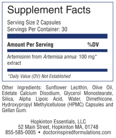 Ingredients: Artemisinin from Artemisia annua extract (leaf): 100 mg.